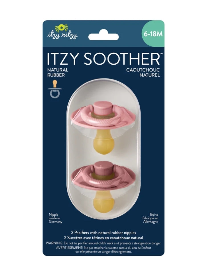 Meet the Itzy Soother™Natural Rubber Pacifier! Each natural rubber nipple is cherry-shaped to mimic breastfeeding & accented with a cable handle. Doubly-soothing, every packaged set includes two complimentary colors while meeting ASTM safety standards and are BPA free. Tranquility (and chill vibes!) are restored for your little cutie!